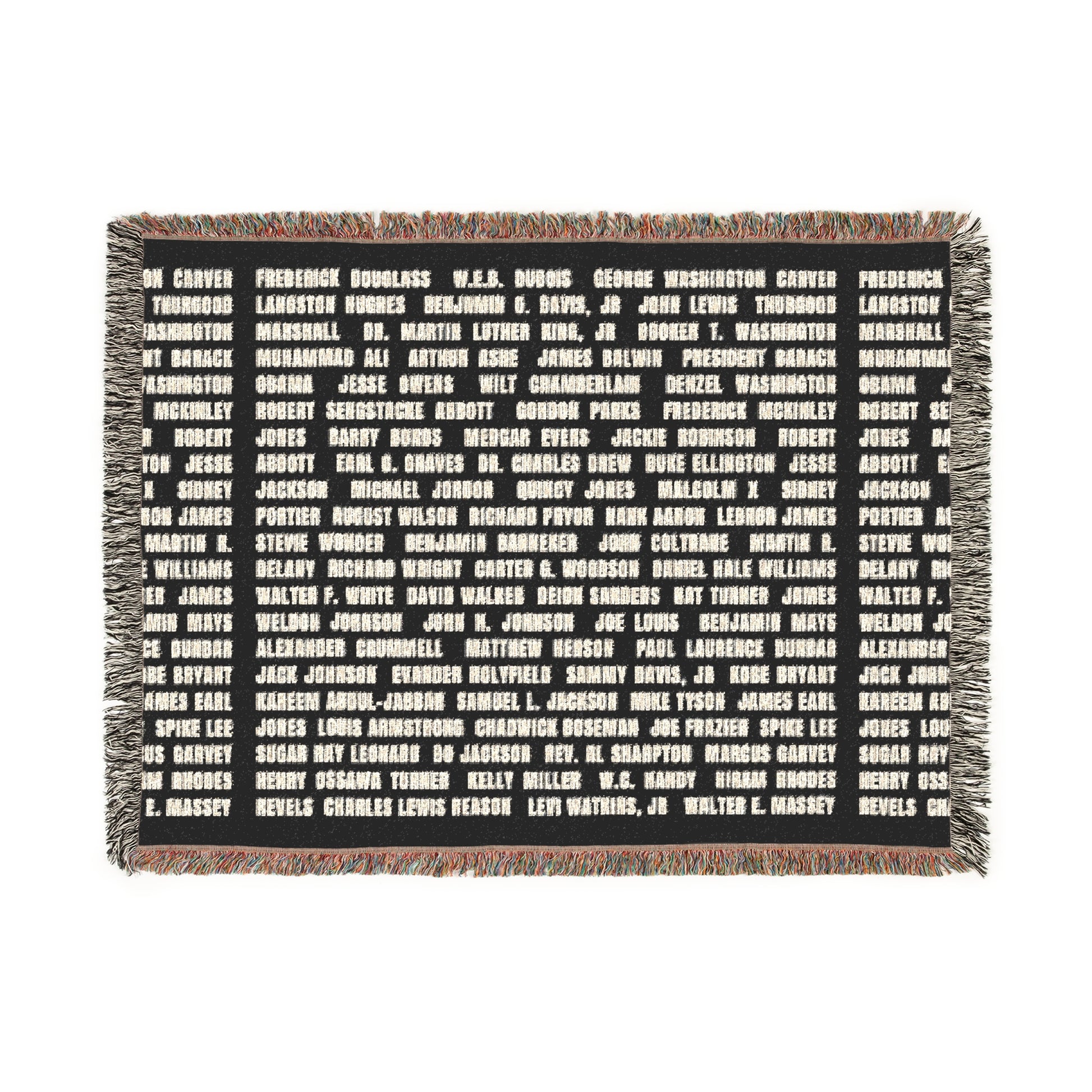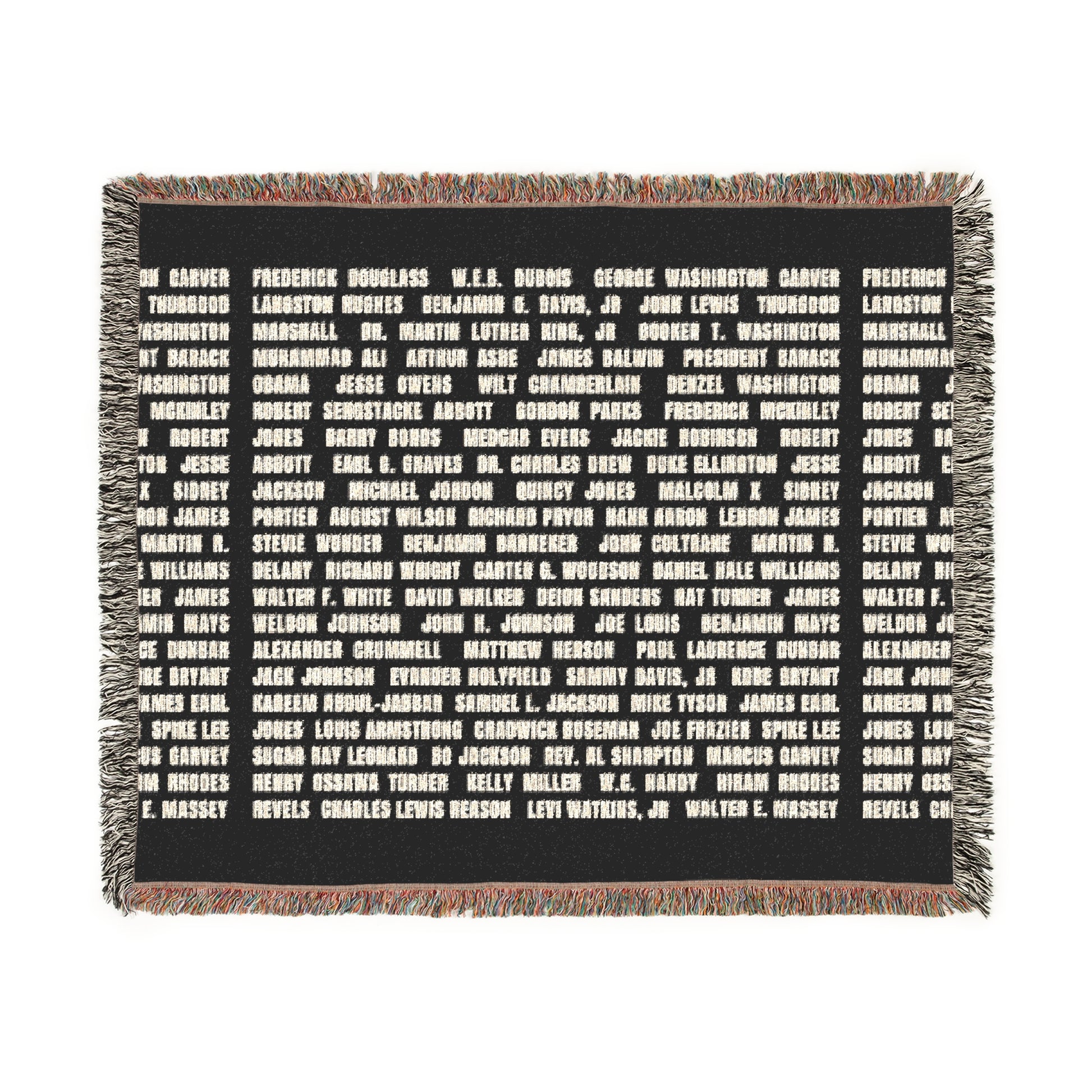 Wrap yourself in warmth and comfort with this cozy woven blanket honoring some of the most revolutionary black men throughtout history! It's perfect for snuggling on chilly evenings. Its soft 100% cotton fabric ensures a smooth touch, making it an ideal companion for movie nights or lazy Sundays. With vibrant fringed edges, this blanket adds a decorative flair to your living space. Whether you want to drape it over your couch or use it as a throw for chilly nights, it elevates any room’s aesthetic. It’s an ideal gift for friends, family, or anyone who enjoys cozy vibes, especially during gatherings, holidays, or as a thoughtful gesture for celebrations like housewarmings or birthdays!
