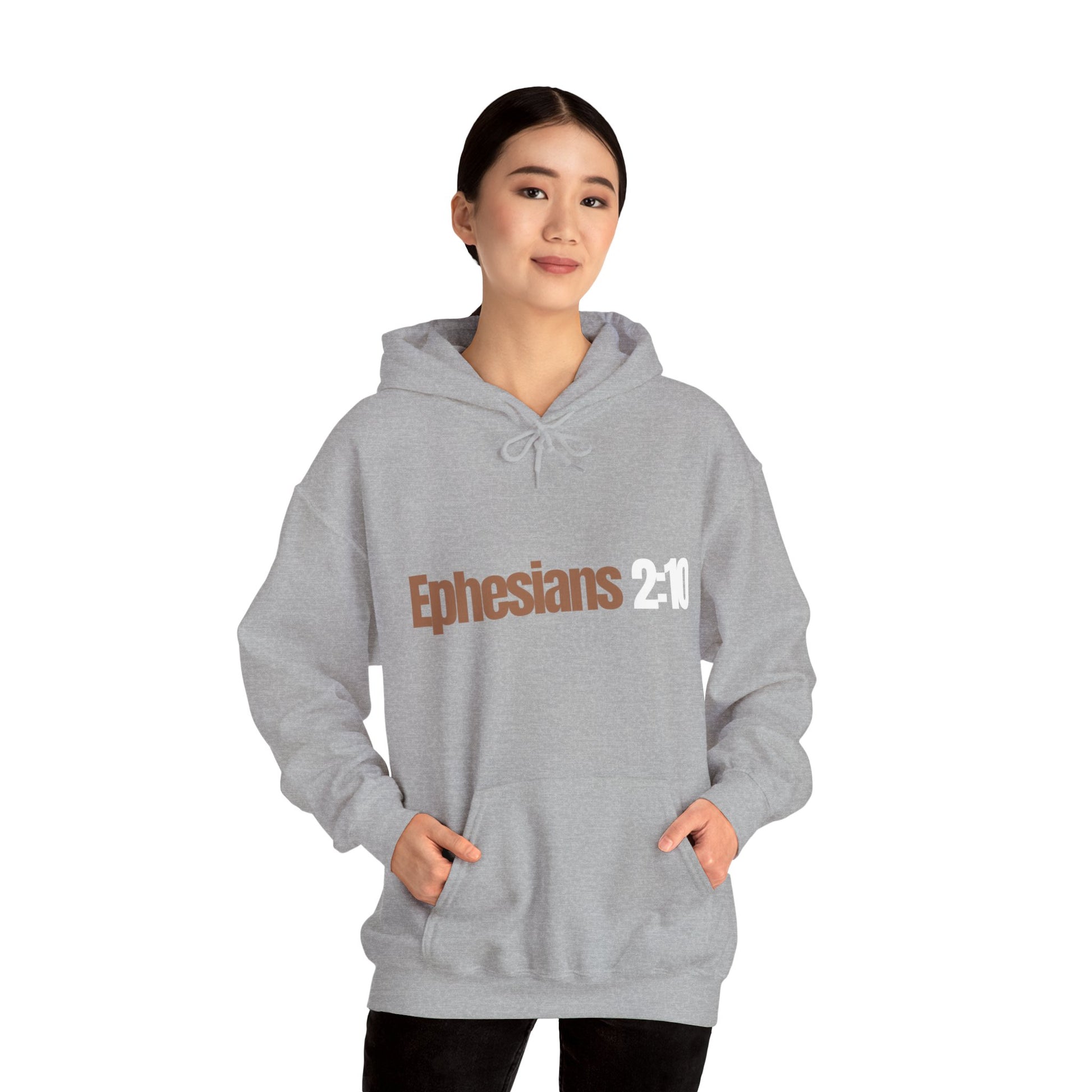 "Ephesians 2:10" Unisex Heavy Blend™ Hooded Sweatshirt - Black, Chocolate, Navy Blue, Gray, Dark Gray, & Hunter Green Available