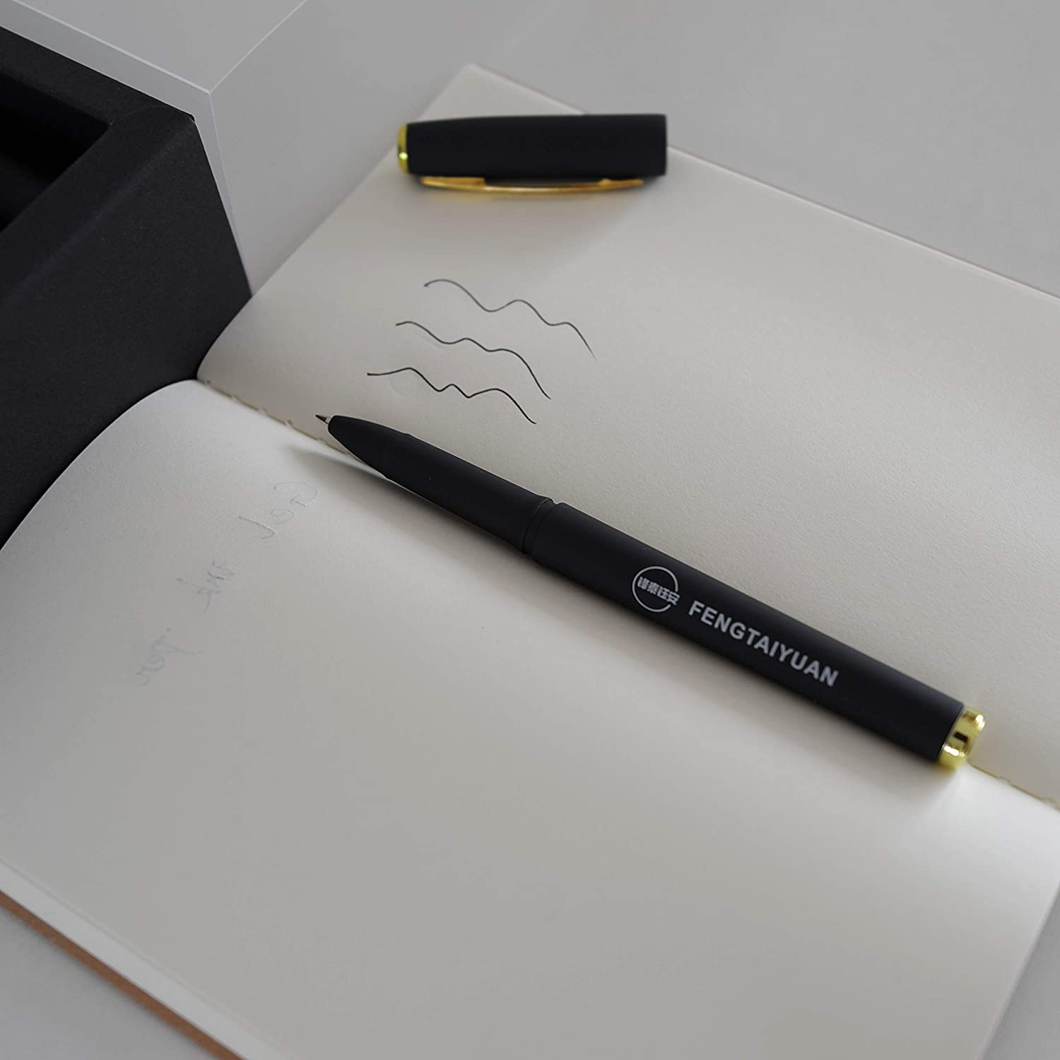 - Pen cap is equipped with a protective pad that can prevent the pen from rolling on flat surfaces.
