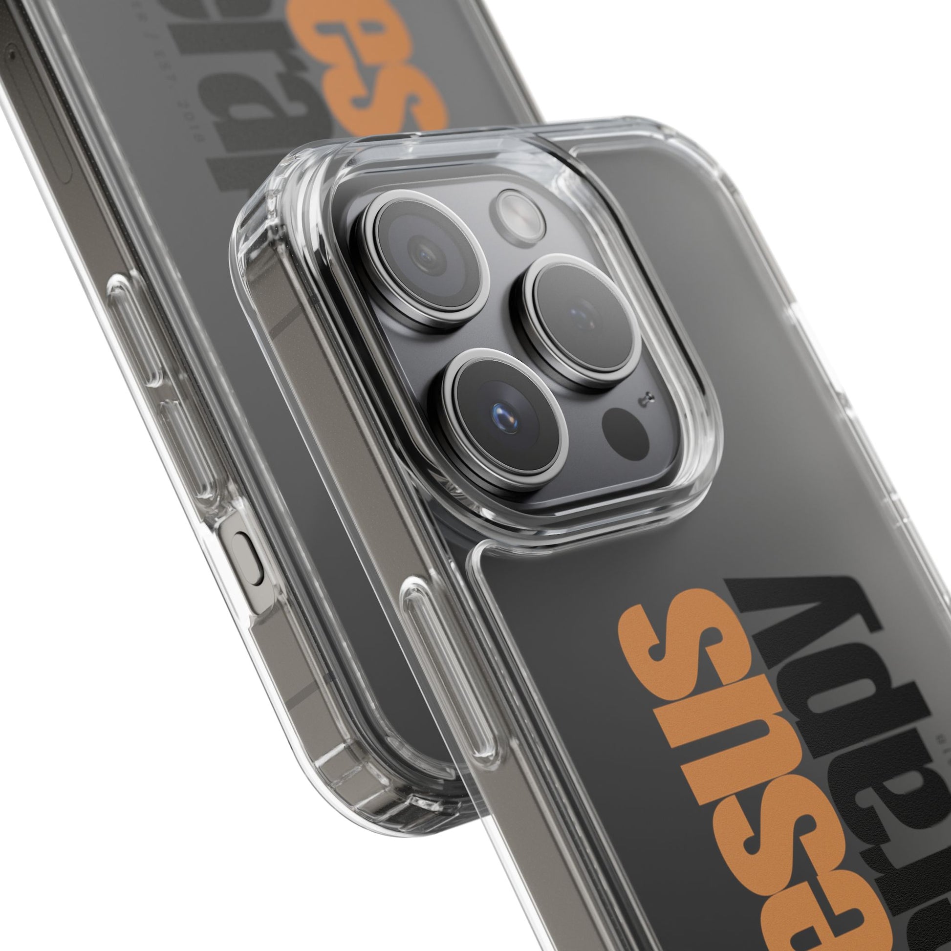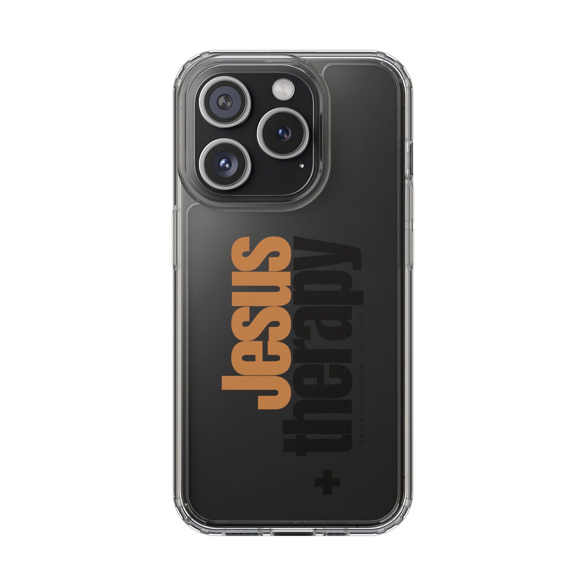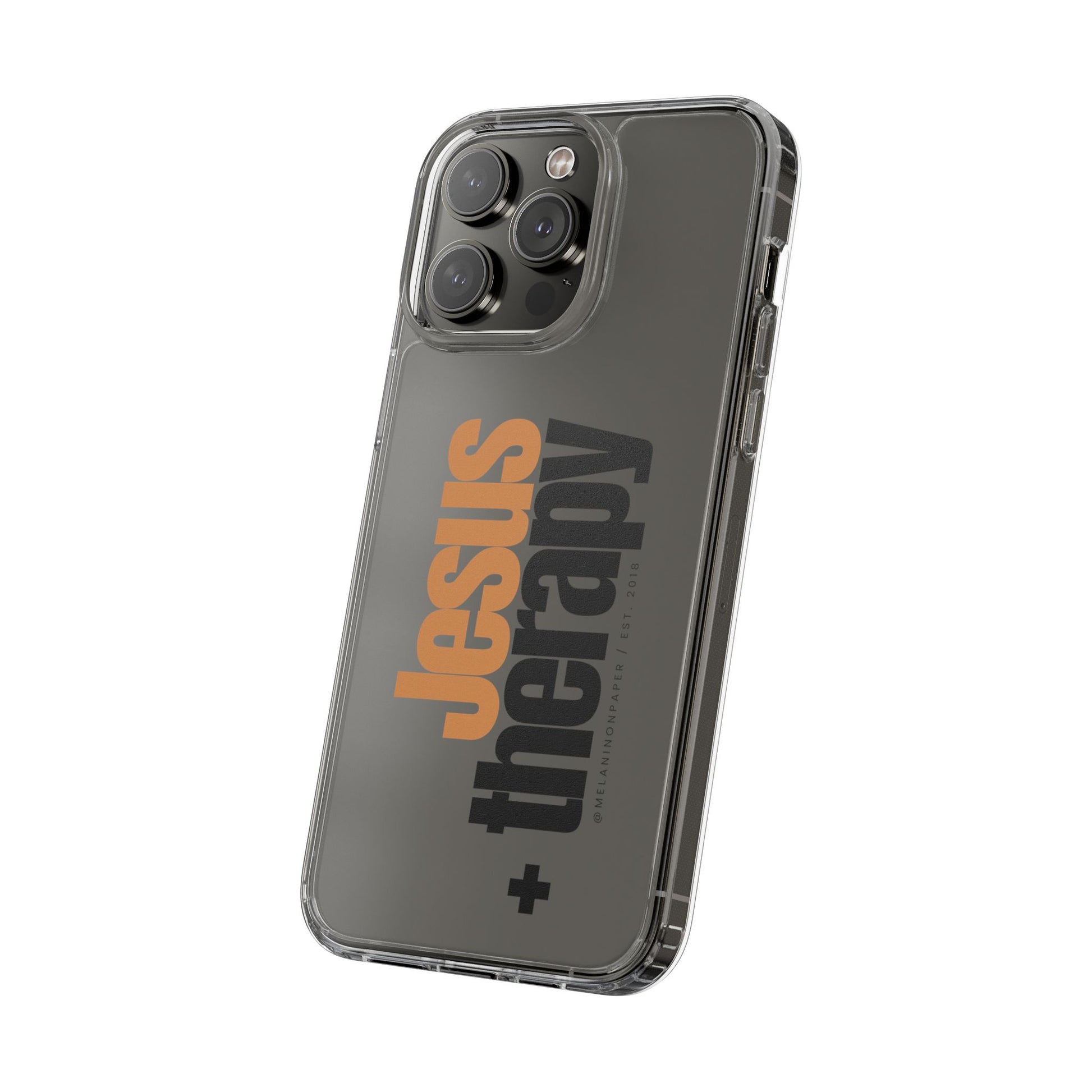 "Jesus + therapy" Clear Phone Cases - black & gold
