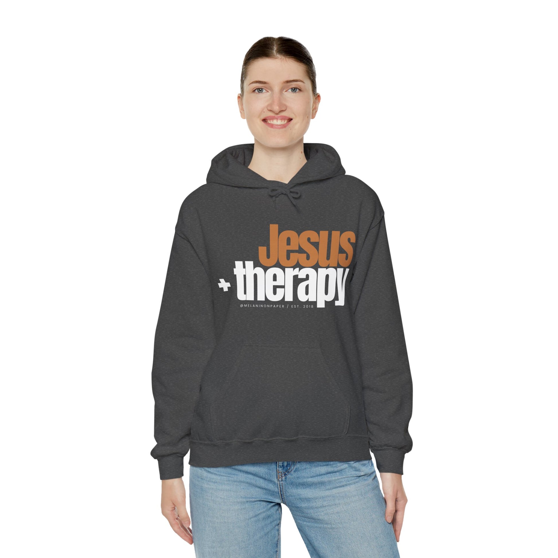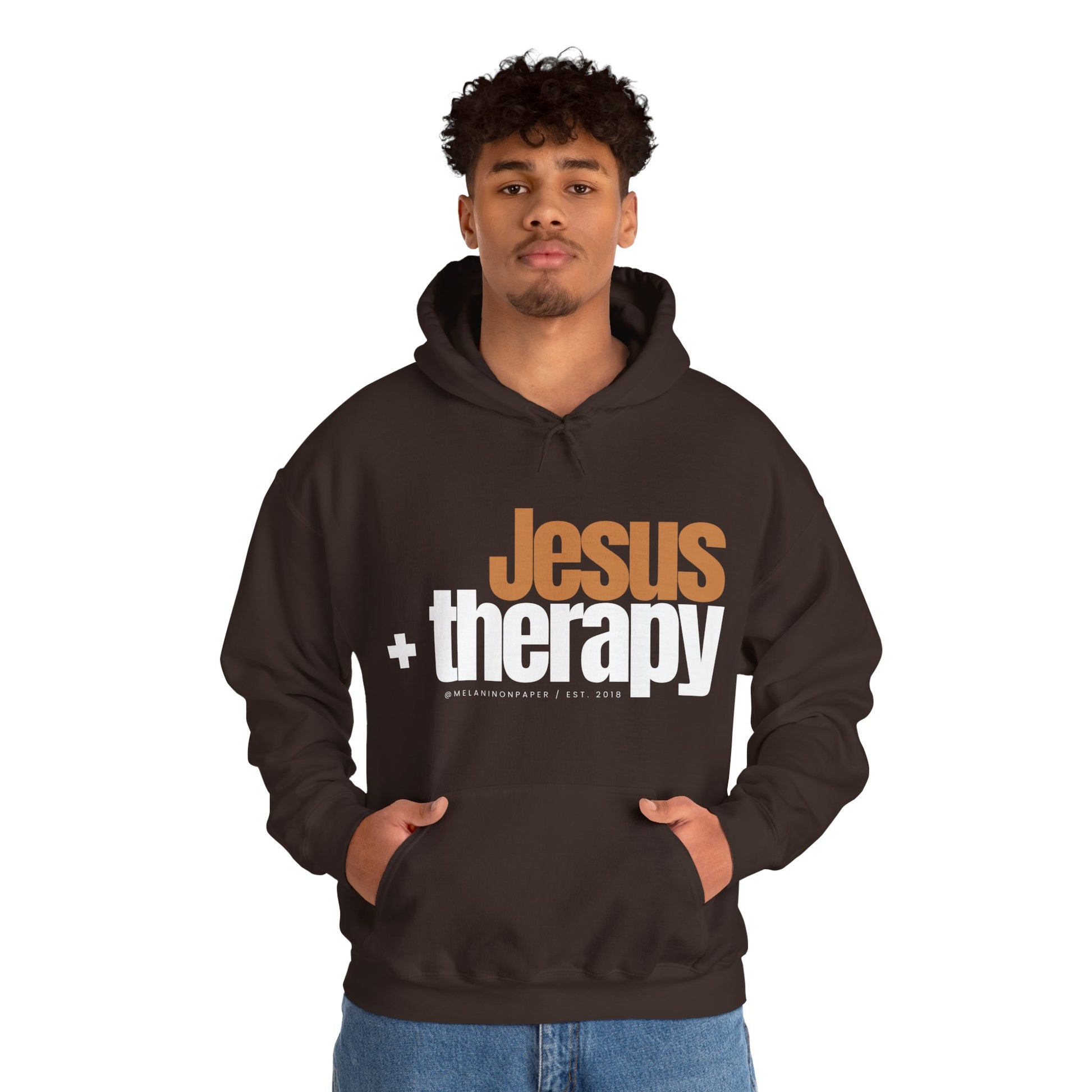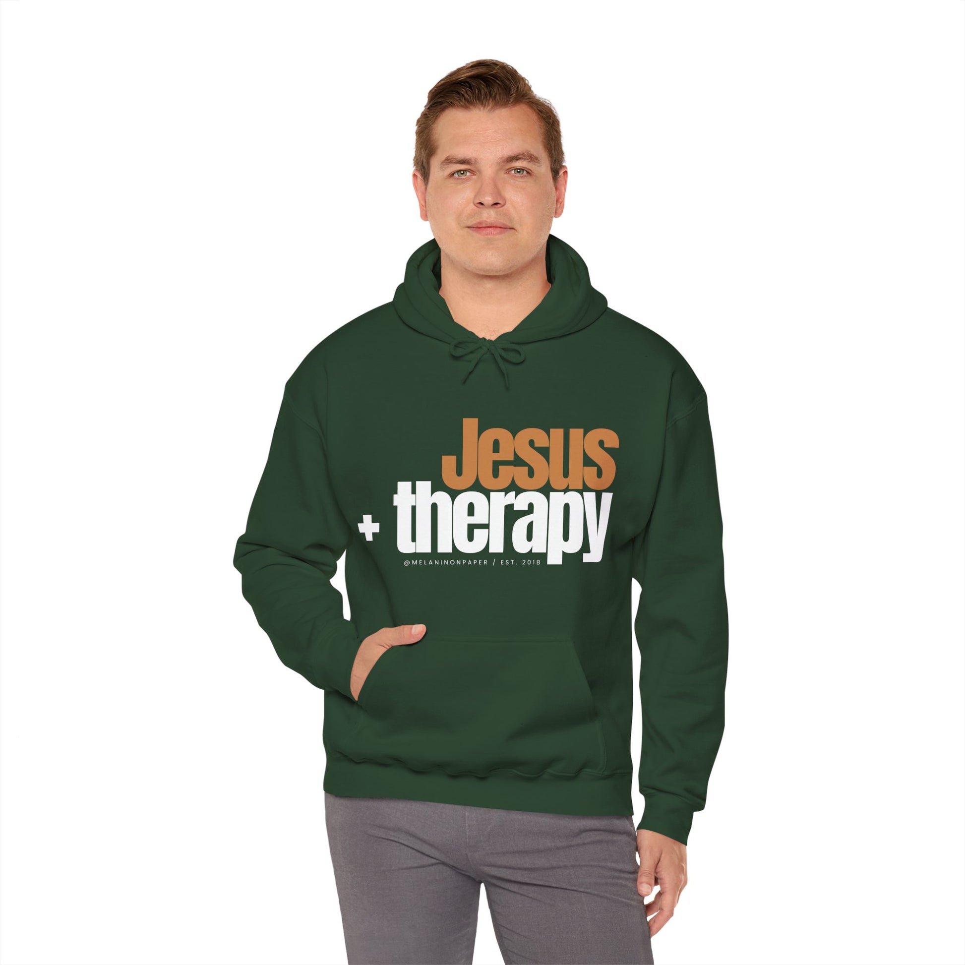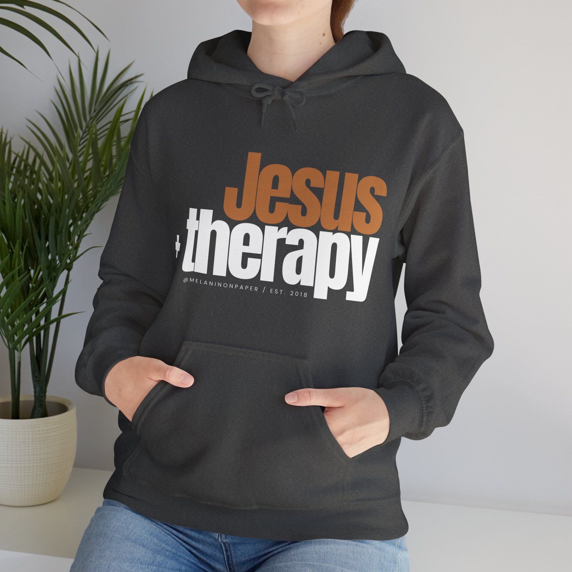 "Jesus + therapy" Unisex Heavy Blend™ Hooded Sweatshirt - Black, Chocolate, Navy Blue, Dark Gray, & Hunter Green Available